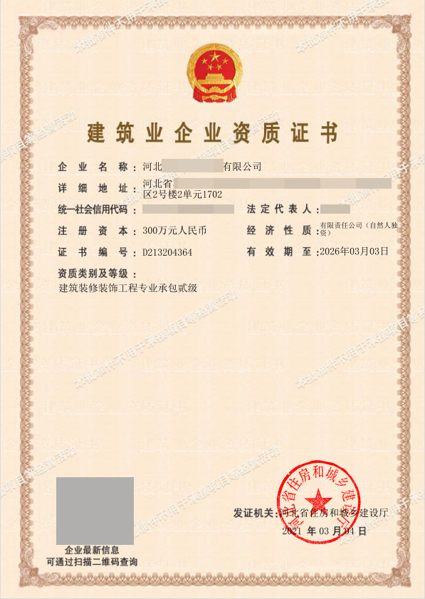 建筑裝修裝飾工程專(zhuān)業(yè)承包二級(jí)資質(zhì)