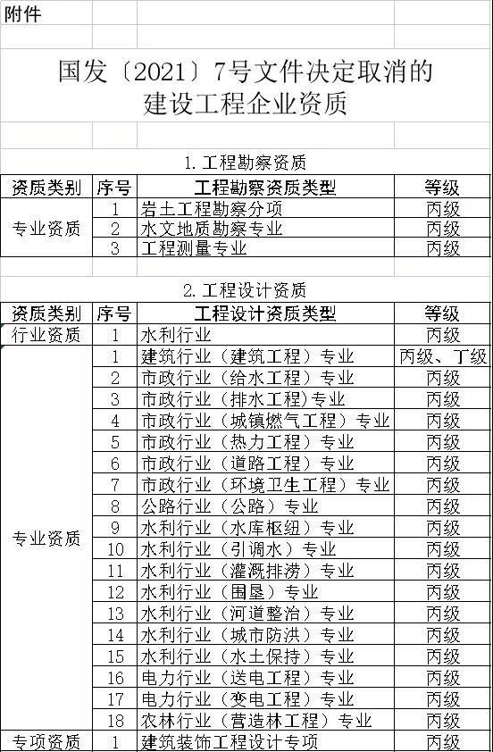 附件:國發(fā)〔2021〕7號文件決定取消的建設(shè)工程企業(yè)資質(zhì)